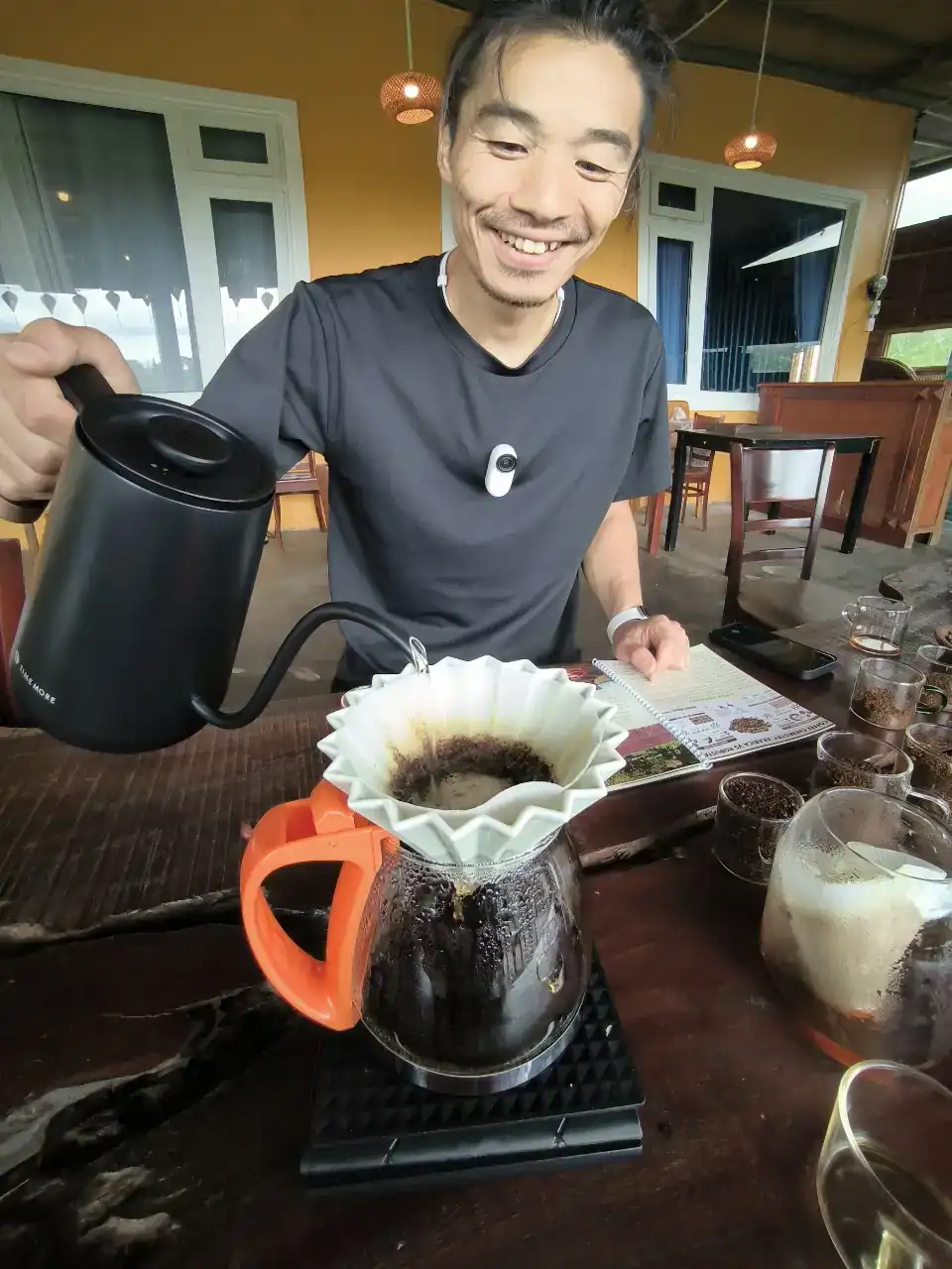 תצפית קפה מסורתית מול נופי דא לאט ולמידה על קיימות והחיים הכפריים בווייטנאם