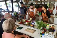 אתם לומדים לבשל מנות קלאסיות ממש כמו המקומיים. כבר מהכניסה מריחים את ריחות התבלינים, הירקות הטריים והקארי שמבעבע על האש. המדריכים המקומיים מלמדים צעד־צעד איך להכין מנות תאילנדיות פופולריות – כמו פאד תאי, קארי ירוק, וסלט סום טאם – תוך הסברים על מקורן התרבותי והאיזון שבין טעמים.