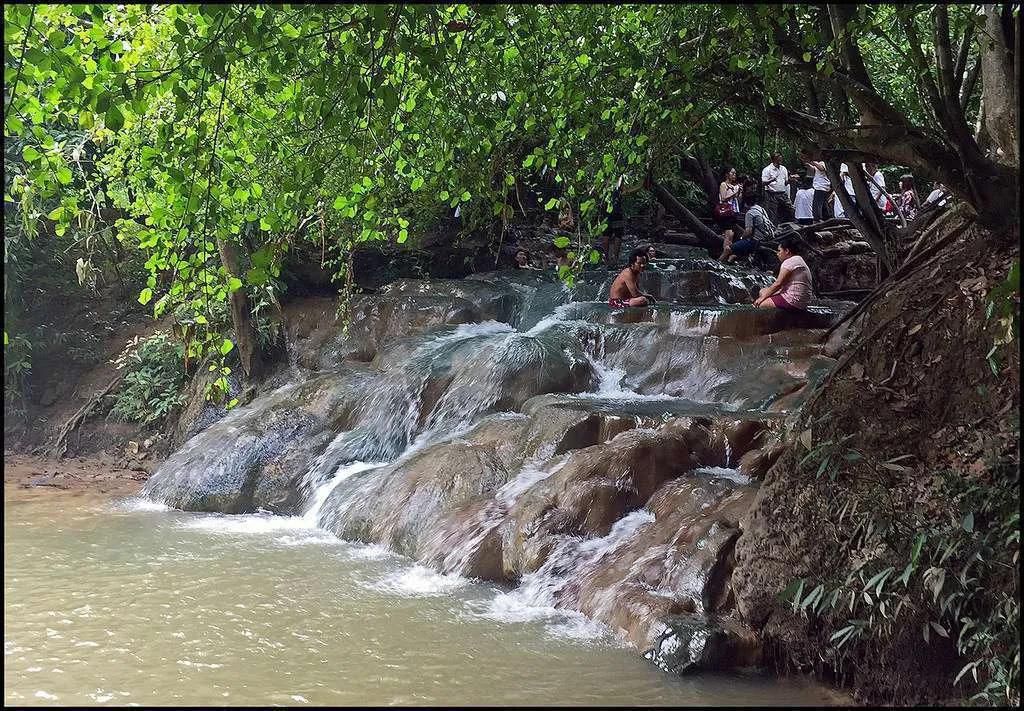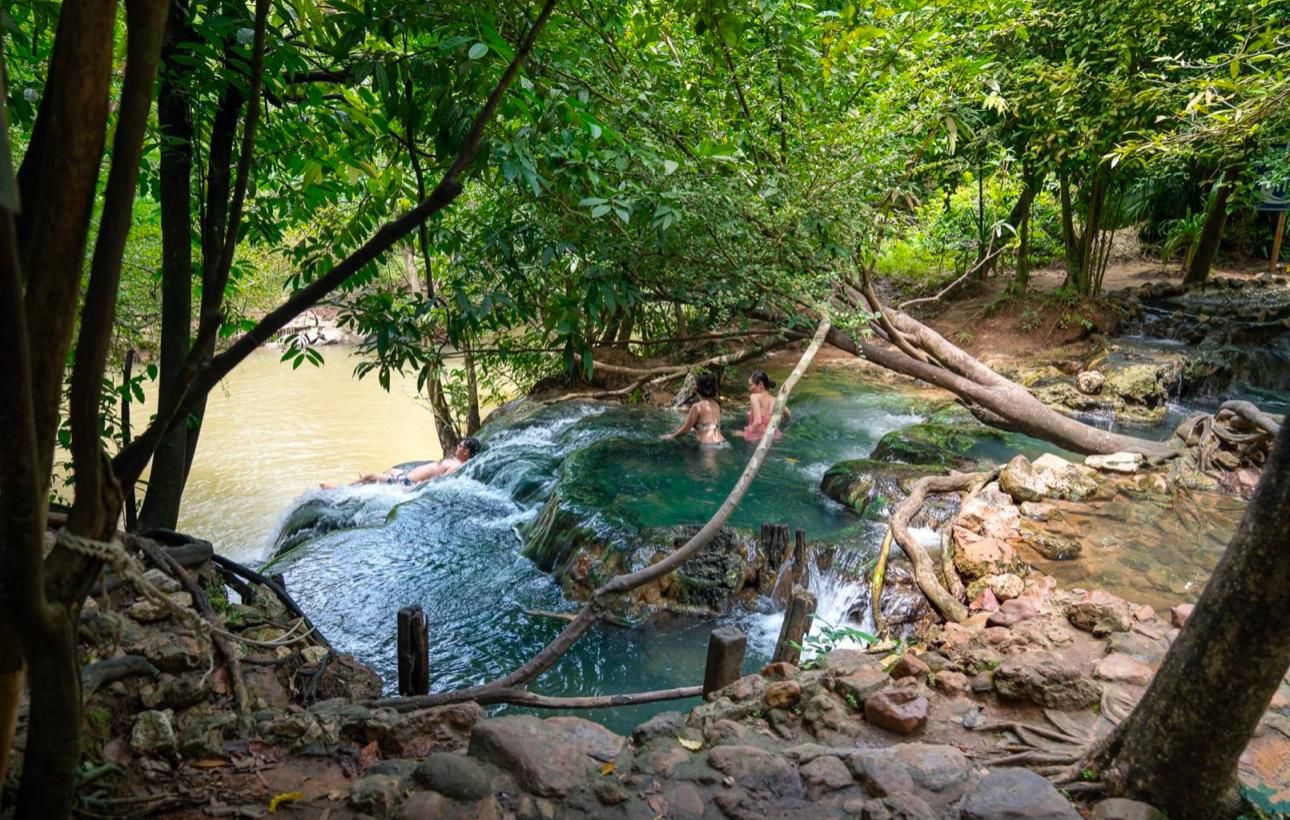 טבילה מרגיעה במפלים של מעיינות חמים טבעיים בלב הג'ונגל הטרופי.