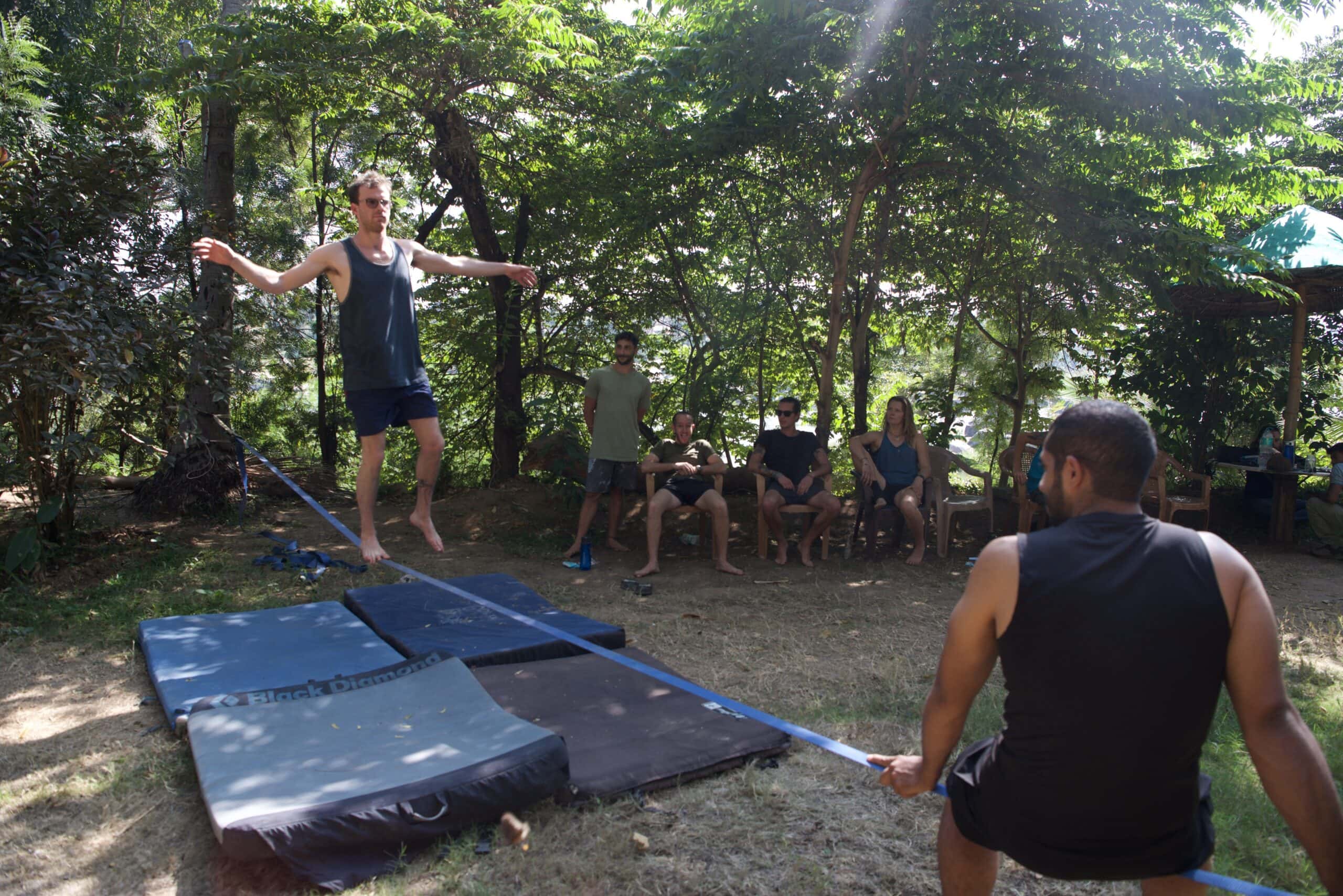 סדנת סלאק ליין מרגשת ביער בולדרי האמפי. הסדנת מועברת על יד מדריך מוסמך. כוללת אופציות להליכה מעל נהרות, בשטח פתוח או בין מצוקים לחוויה אתגרית ובטוחה.