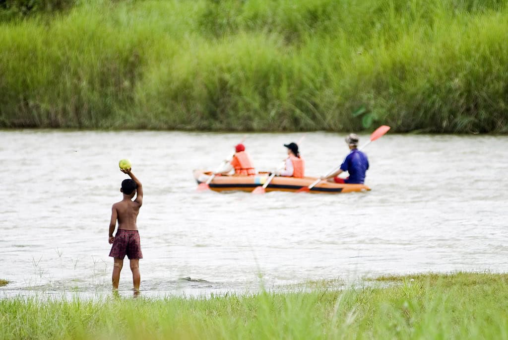שיא הסיור הוא הרגע שבו כולם נגררים יחד בקטע זורם של הנהר – צחוקים, התזות מים והנוף הירוק שנפתח מולכם. תחושת חופש כיפית, בלי מאמץ ובלי לחץ.