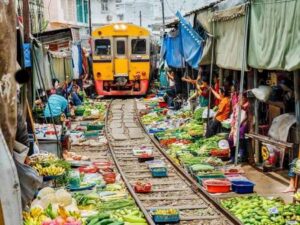 סיור בשוק הרכבת. מאקלונג ובשוק הצף דמנואן סדואק הוא חוויה צבעונית, אותנטית וייחודית. רכבת שחוצה שוק פעיל, שיט בסירה בין דוכנים צפים, טעמים, ריחות וצילומים בלתי נשכחים.