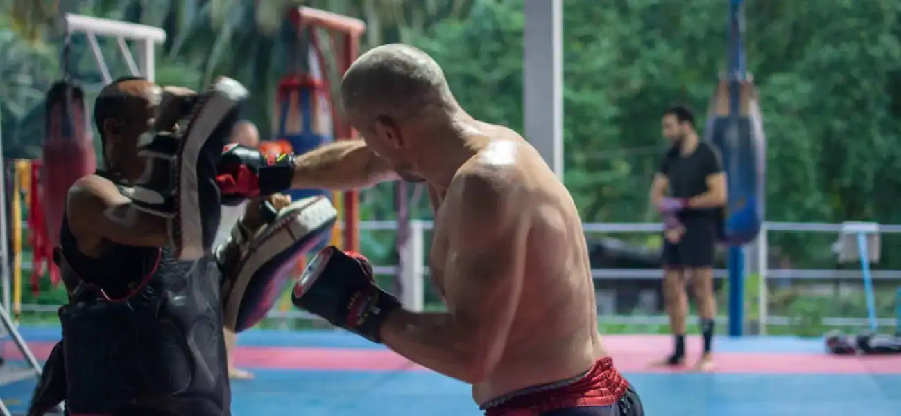 אימון קבוצתי באיגרוף תאילנדי עם מדריכים מקומיים בקופנגן. חוויה ספורטיבית, אותנטית ומלאת אנרגיה שמתאימה לכל הרמות.