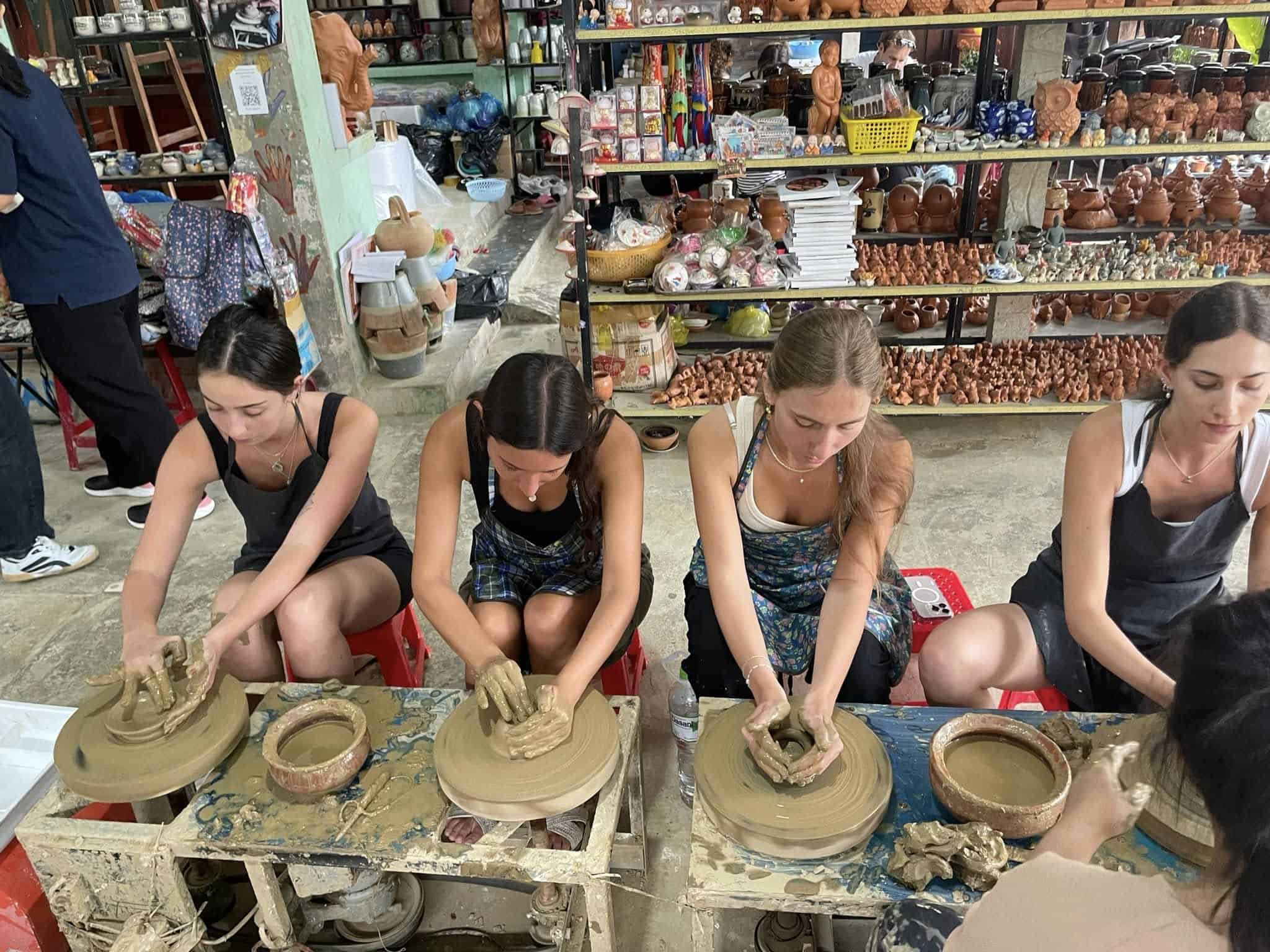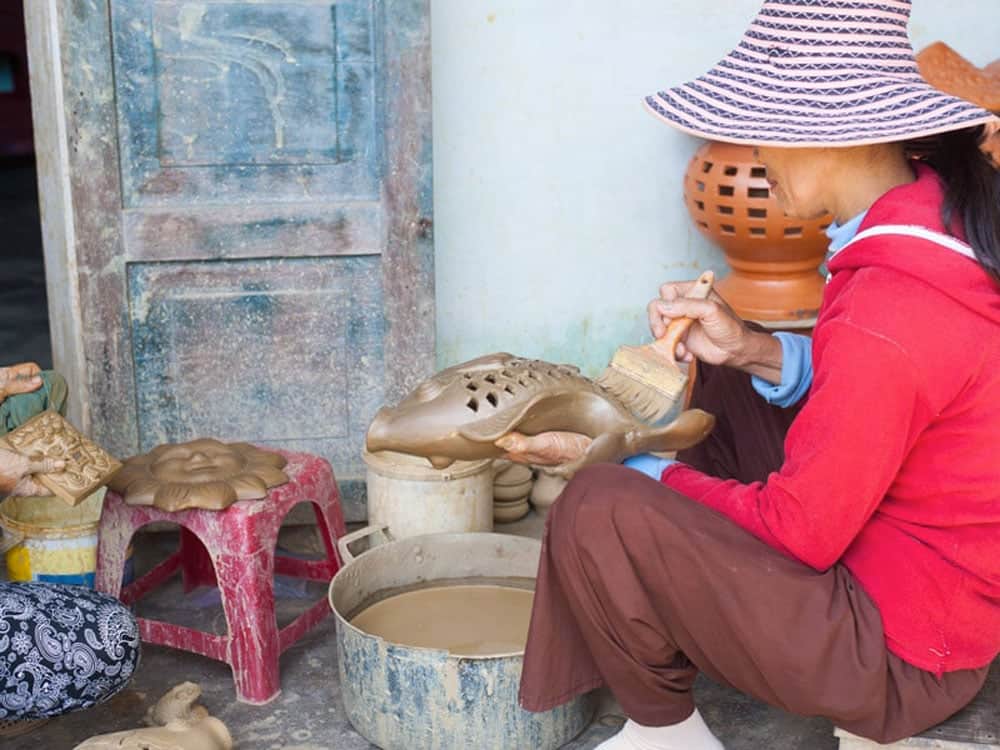 סדנת קדרות מיוחדת בכפר Thanh Ha. ללמוד, לעצב ולצבוע כלי חרס בעבודת יד בהדרכת אמנית מקומית.