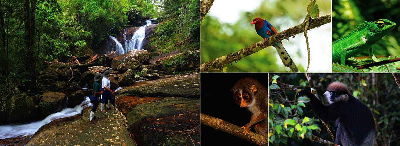 סיור ביער הגשם הבתולי האחרון בסרי לנקה. אתר מורשת עולמית עם צפייה בציפורים אנדמיות נדירות, חיות בר ומפלים טבעיים מדהימים.