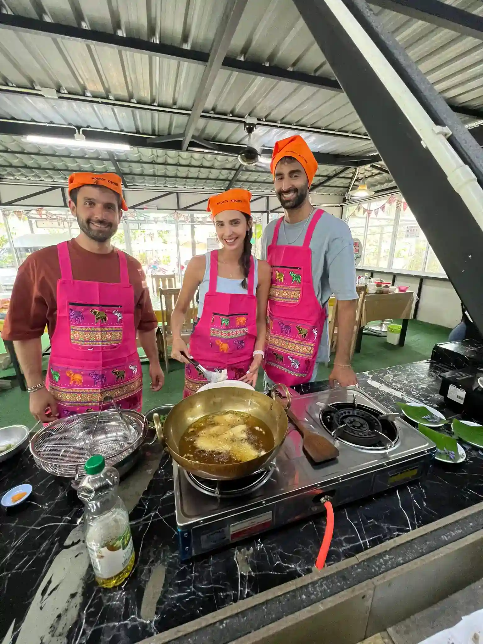 קורס בישול תאילנדי בפוקט נבנה סביב עשייה. תכינו 4 מנות פופולריות כמו Pad Thai, Green Curry, Tom Yum ו-Mango Sticky Rice. המדריכים מלווים אתכם שלב-אחר-שלב, לכן תלמדו לתבל נכון, לאזן חריפות ולבשל בטכניקות מסורתיות. בנוסף, תטעמו תוך כדי, כך שהכול נשאר כיפי וזורם. בסיום תשבו לארוחה משותפת באוויר הפתוח.